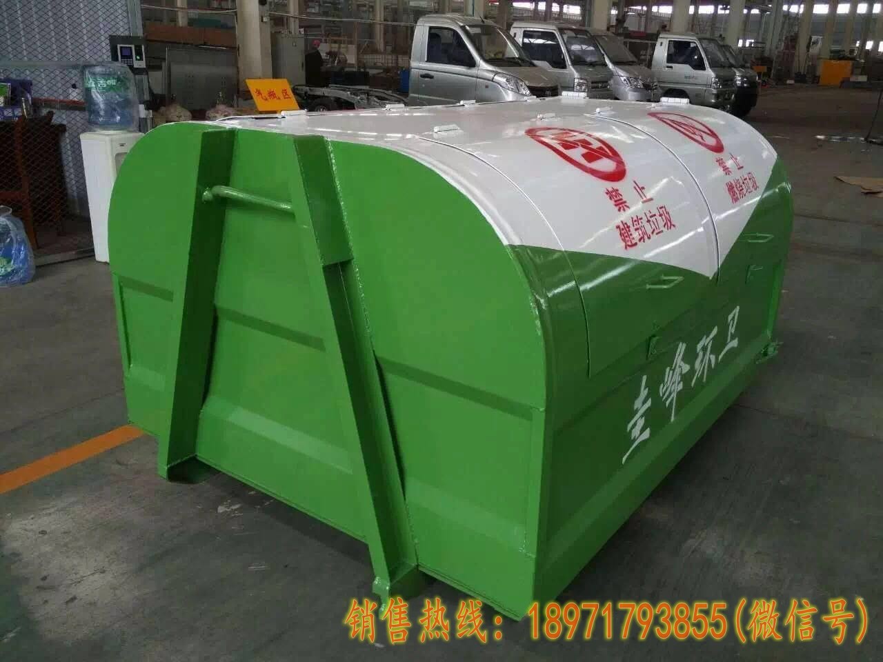 我公司常年从事各式各样的垃圾箱生产及销售,垃圾箱车间生产的3立方垃圾箱/4立方垃圾箱/5立方垃圾箱/6立方垃圾车/ 8立方垃圾箱/10方至18立方垃圾箱.
